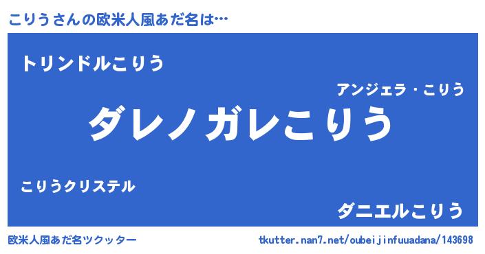| 男性向けラノベタイトル風あだ名 | 『魔弾の王とこりう』 |