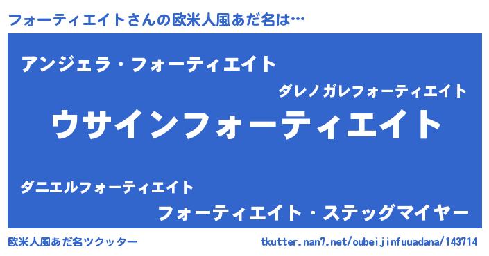 | 胡散臭い通販商品みたいなあだ名 | 『信頼と実績のサプリメント…その名も「フォーティエイト」』 |