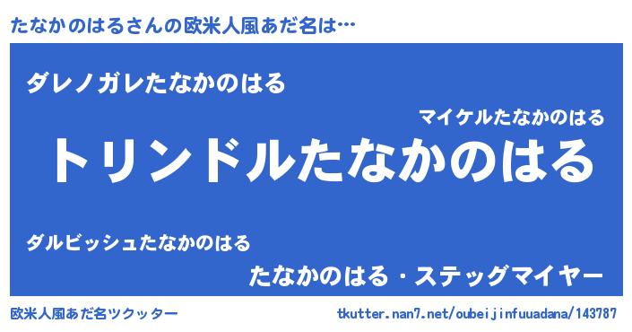 | 男性向けラノベタイトル風あだ名 | 『タナカノハルスレイヤー』 |