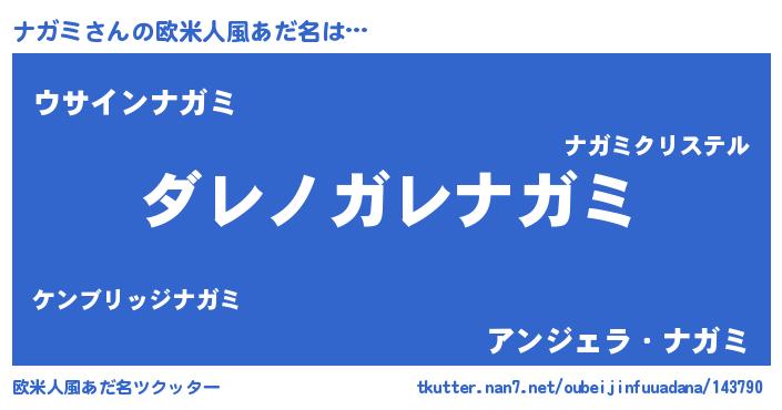| ポケモン風あだ名 | 『ナーガイ』『ヒナガミ』『ナガゴンZ』 |