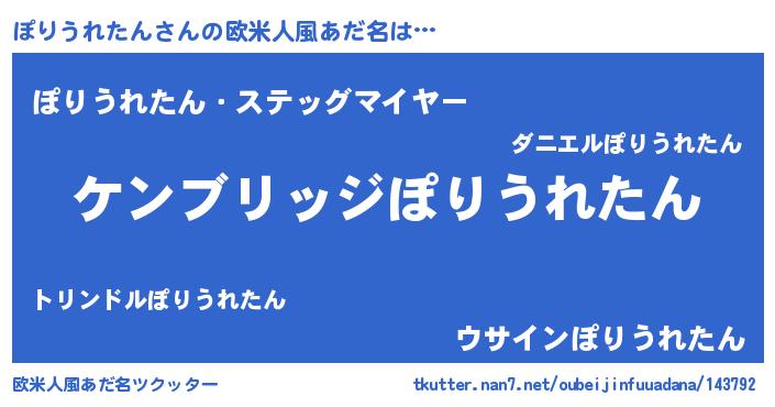 | 男性向けラノベタイトル風あだ名 | 『Re:ぽりうれたんから始める異世界生活』 |