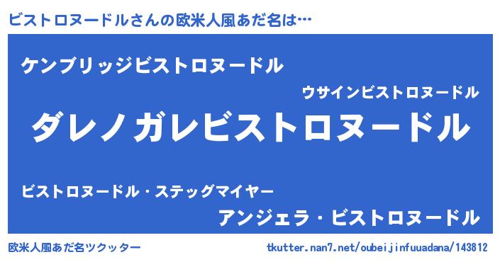 | 女子向けラノベタイトル風あだ名 | 『悪役ビストロヌードルに転生したようですが、知った事ではありません』 |