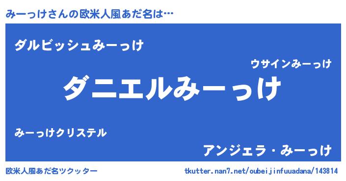 | 男性向けラノベタイトル風あだ名 | 『ノーゲーム・ノーミーッケ』 |