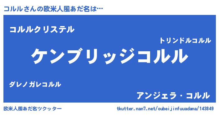 | 意味不明あだ名 | 『自称コルル』『コルルフォーエバー』 |