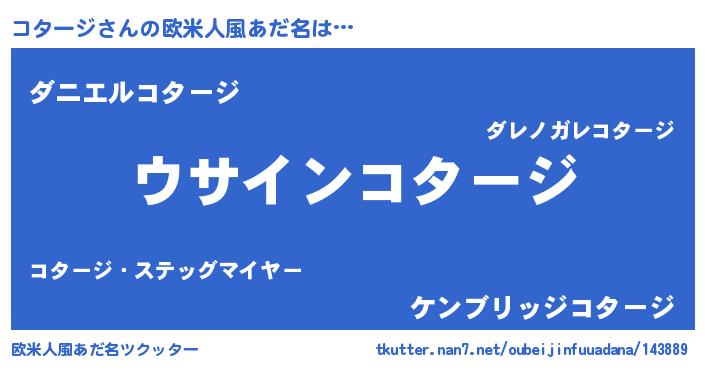 | 男性向けラノベタイトル風あだ名 | 『コタージの嫁は女の子じゃないと思った?』 |