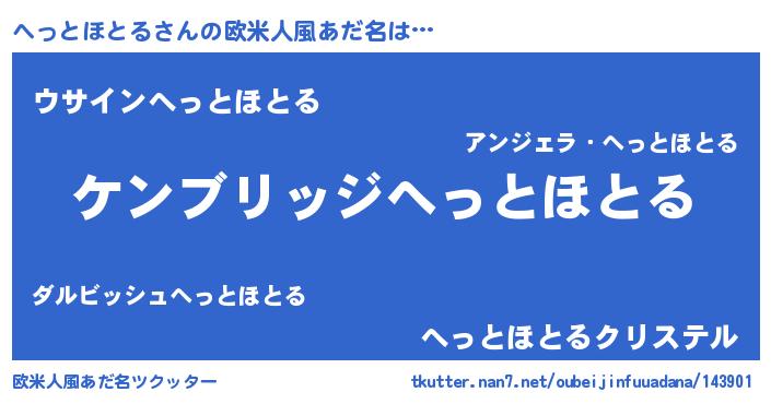 | 女子向けラノベタイトル風あだ名 | 『へっとほとるなんてお断りですっ。』 |