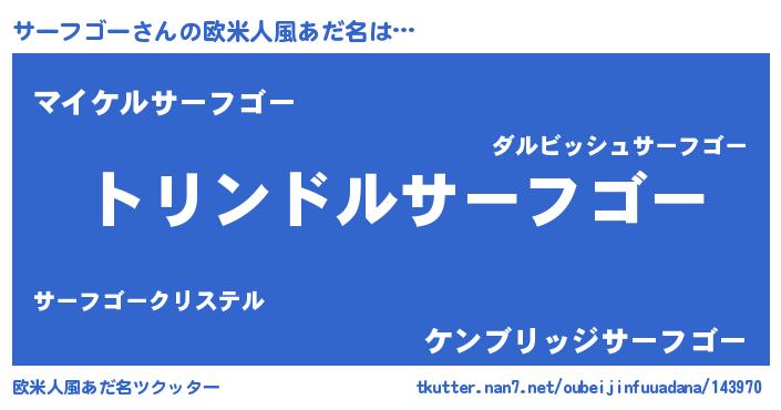 | 男性向けラノベタイトル風あだ名 | 『サーフゴー~年齢イコール彼女いない歴の魔法使い~』 |