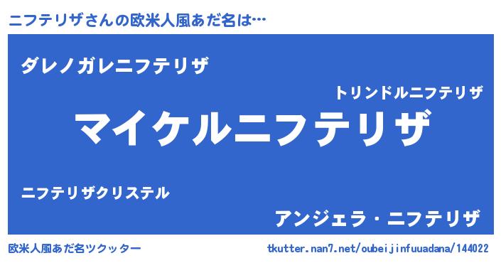 | 男性向けラノベタイトル風あだ名 | 『ニフテリザアートオンライン』 |