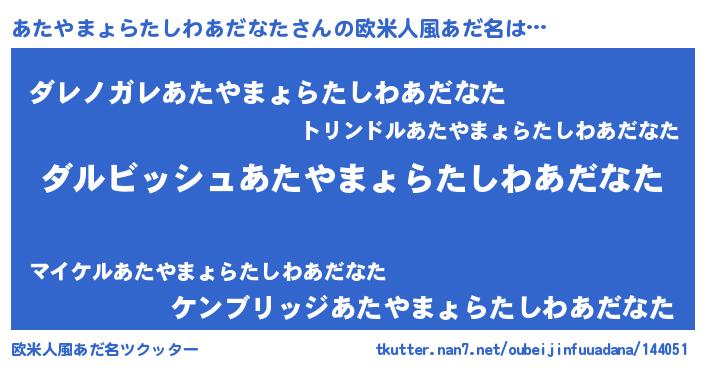 | 意味不明あだ名 | 『永久保存あたやまょらたしわあだなた』 |