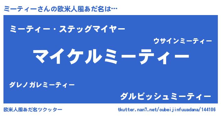 | 男性向けラノベタイトル風あだ名 | 『ミーティーアートオンライン』 |
