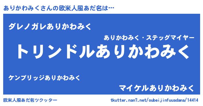 | 男性向けラノベタイトル風あだ名 | 『転生したらありかわみくだった件』 |