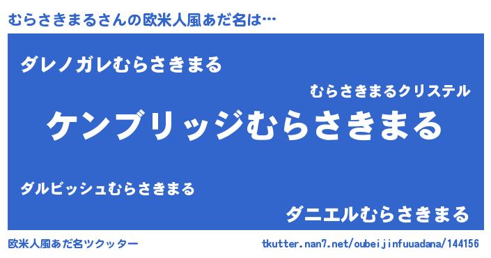 | 男性向けラノベタイトル風あだ名 | 『Re:むらさきまるから始める異世界生活』 |