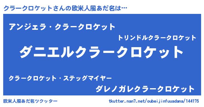 | 女子向けラノベタイトル風あだ名 | 『死神クラークロケットの再婚』 |