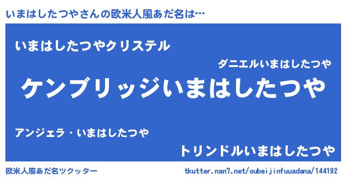 | 男性向けラノベタイトル風あだ名 | 『Re:いまはしたつやから始める異世界生活』 |