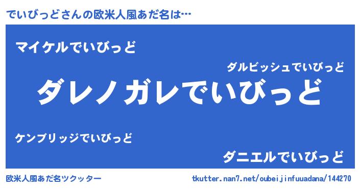 ヘコむあだ名 | 『でいっふぃ~』『でいびっど(笑)』 |