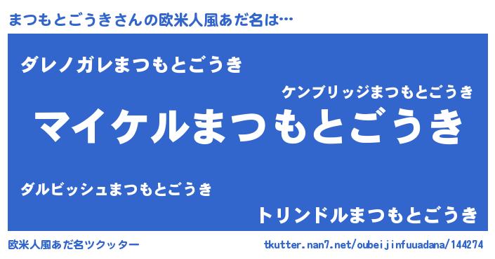 | 男性向けラノベタイトル風あだ名 | 『マツモトゴウキアートオンライン』 |
