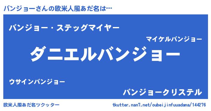 | 女子向けラノベタイトル風あだ名 | 『バンジョー夫妻のなれそめ』 |