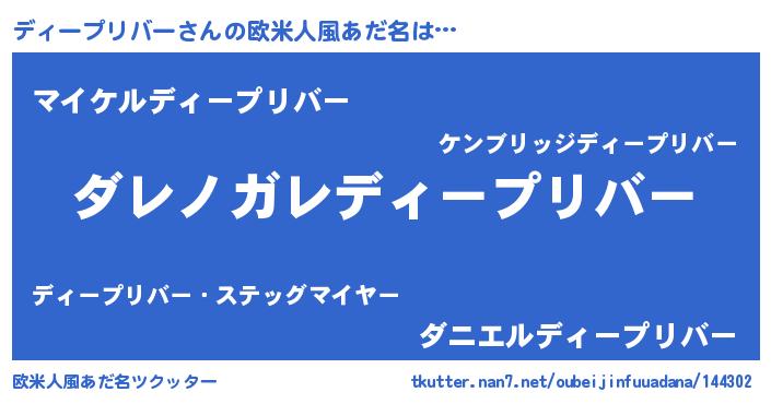 | 男性向けラノベタイトル風あだ名 | 『この素晴らしい世界にディープリバーを!』 |