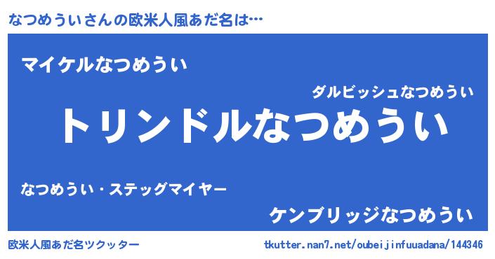 | 男性向けラノベタイトル風あだ名 | 『ナツメウイスレイヤー』 |