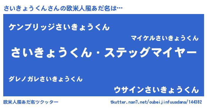 | 男性向けラノベタイトル風あだ名 | 『冴えないさいきょうくんの育てかた』 |