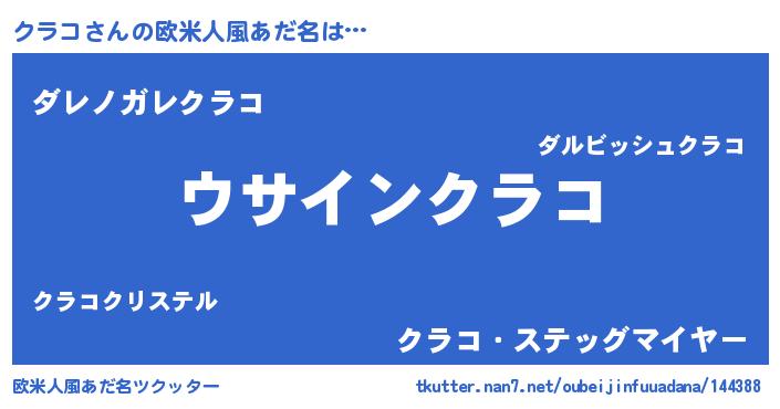 | ポケモン風あだ名 | 『ヒクラコ』『クーライ』『ゼニクラ』 |