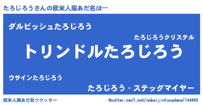 | 男性向けラノベタイトル風あだ名 | 『たろじろう~年齢イコール彼女いない歴の魔法使い~』 |