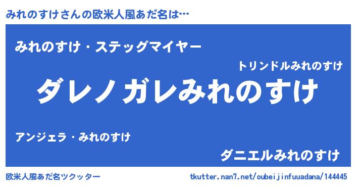 | 意味不明あだ名 | 『住所不定無職みれのすけ(8歳)』 |