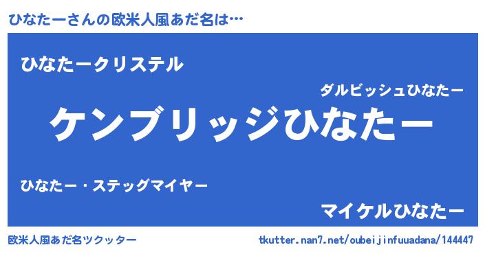 | ファンタジー風あだ名 | 『ゼヒナトゥ』『エターナルヒナターー』 |