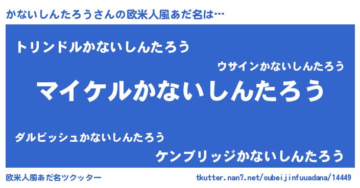 | 男性向けラノベタイトル風あだ名 | 『カナイシンタロウアートオンライン』 |