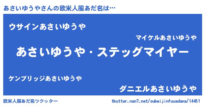 | 男性向けラノベタイトル風あだ名 | 『冴えないあさいゆうやの育てかた』 |