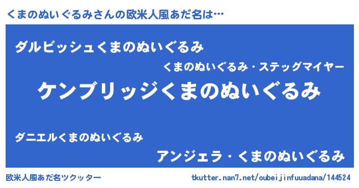| 男性向けラノベタイトル風あだ名 | 『魔法科高校のくまのぬいぐるみ』 |