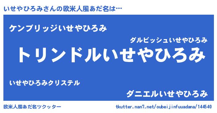 | 男性向けラノベタイトル風あだ名 | 『いせやひろみ~年齢イコール彼女いない歴の魔法使い~』 |