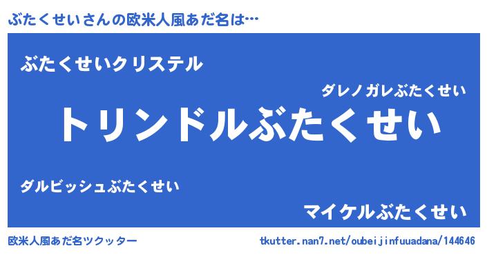 | 男性向けラノベタイトル風あだ名 | 『ぶたくせい~年齢イコール彼女いない歴の魔法使い~』 |