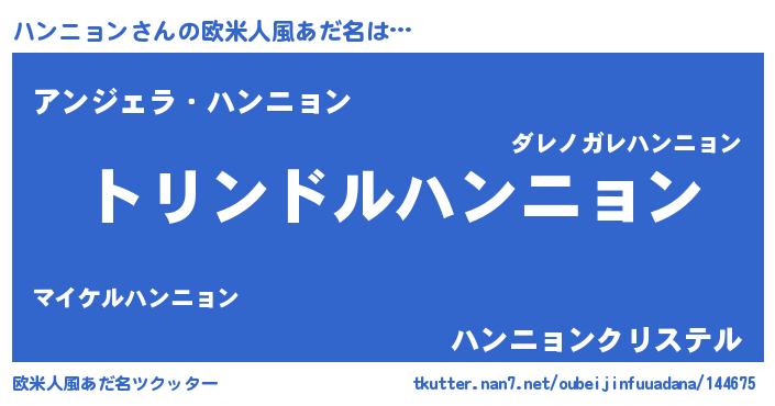 | 男性向けラノベタイトル風あだ名 | 『転生したらハンニョンだった件』 |