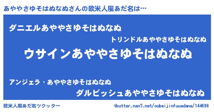 | ポケモン風あだ名 | 『ヒアヤヤサユソハヌナヌ』『アックウザ』 |