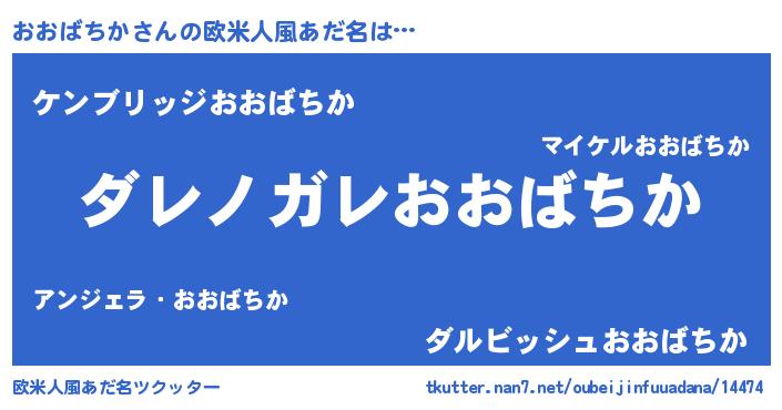 | 意味不明あだ名 | 『住所不定無職おおばちか(85歳)』 |