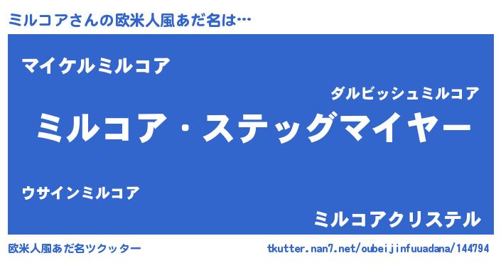 | 意味不明あだ名 | 『ペロリンミルコア』『永久保存ミルコア』 |