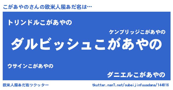 | 意味不明あだ名 | 『永久保存こがあやの』『自称こがあやの』 |