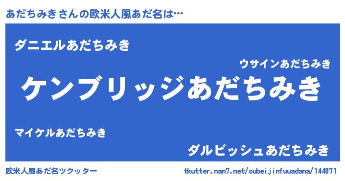 | 意味不明あだ名 | 『自称あだちみき』『永久保存あだちみき』 |