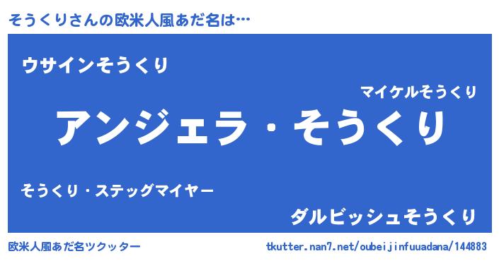 | 胡散臭い通販商品みたいなあだ名 | 『信頼と実績のサプリメント…その名も「そうくり」』 |
