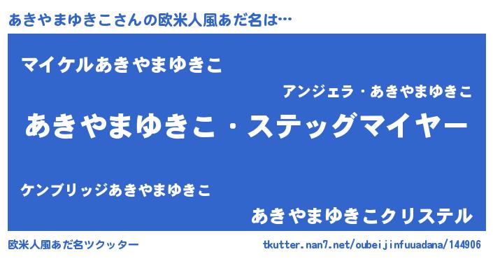 | 男性向けラノベタイトル風あだ名 | 『うちのあきやまゆきこが世界を掌握している!』 |