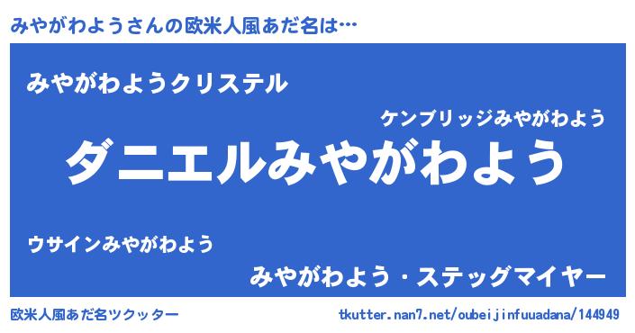 | 男性向けラノベタイトル風あだ名 | 『おまえをオタクにしてやるから、俺をみやがわようにしてくれ! 』 |