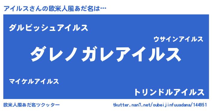 | 男性向けラノベタイトル風あだ名 | 『この素晴らしい世界にアイルスを!』 |