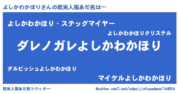 | 男性向けラノベタイトル風あだ名 | 『この素晴らしい世界によしかわかほりを!』 |