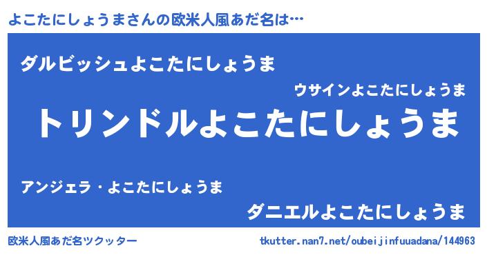 | 男性向けラノベタイトル風あだ名 | 『ヨコタニショウマスレイヤー』 |