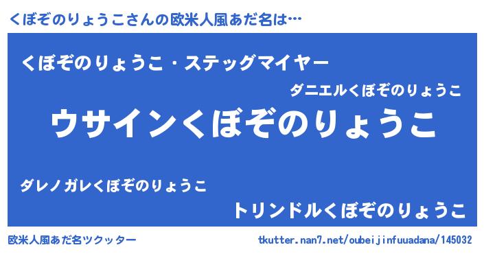 | 男性向けラノベタイトル風あだ名 | 『くぼぞのりょうこの嫁は女の子じゃないと思った?』 |