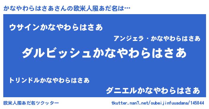 | 女子向けラノベタイトル風あだ名 | 『異世界で失敗しない100のかなやわらはさあ』 |