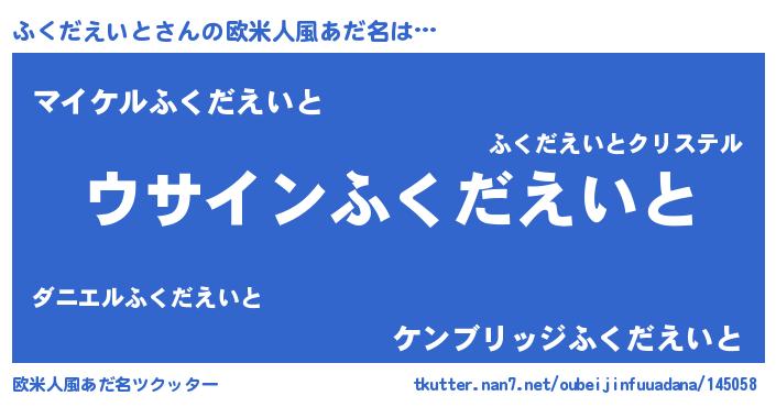 | 男性向けラノベタイトル風あだ名 | 『ふくだえいとの嫁は女の子じゃないと思った?』 |