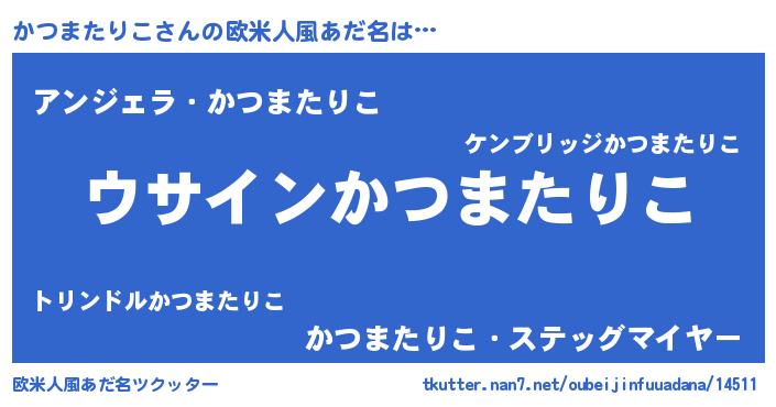 | 男性向けラノベタイトル風あだ名 | 『かつまたりこの嫁は女の子じゃないと思った?』 |