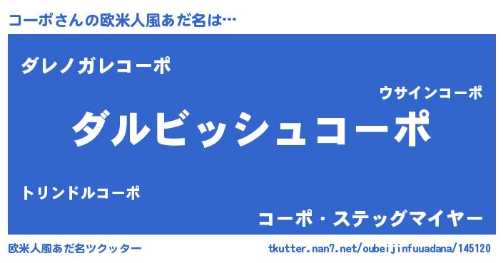 | ピコ太郎風あだ名 | 『ピココ郎』『コー四郎』『ココ太郎』 |